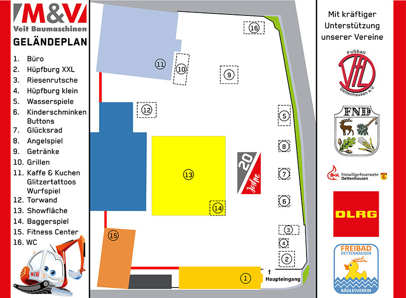 Hier kannst du dir unsere Geländeplan der 20 Jahr Feier runterladen um dir ein Bild zu machen wo was steht.