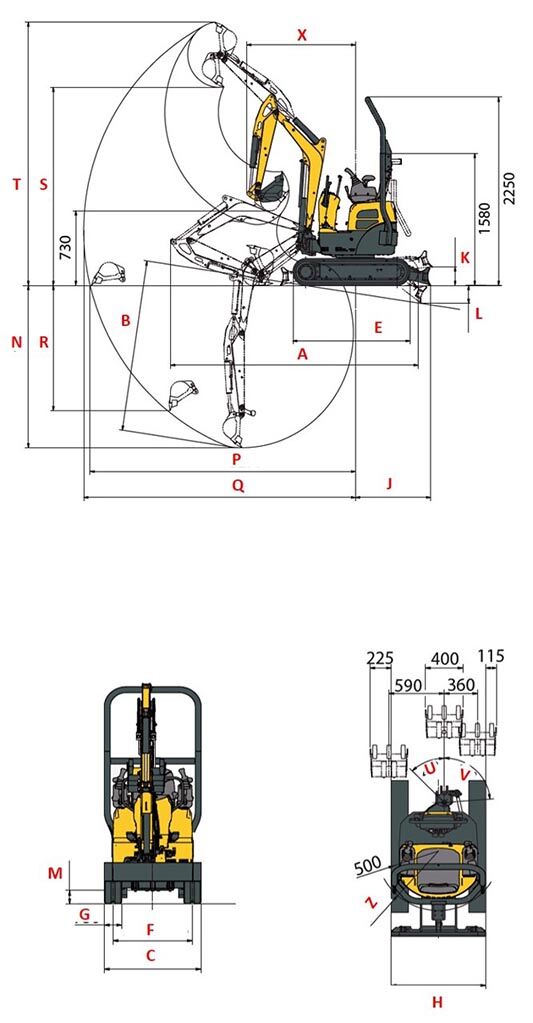 | D | Länge der Laufketten am Boden | 1095 mm |