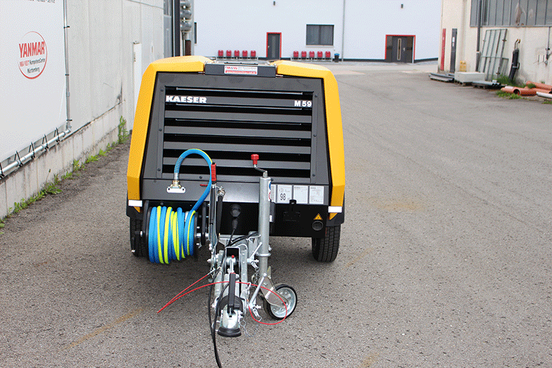 Durch die PKW-Kupplung lässt sich der Mobilair P 59 PE einfach und flexibel mit einem PKW oder leichten Zugfahrzeug transportieren. So kann der Kompressor schnell von A nach B gebracht und direkt dort eingesetzt werden, wo Druckluft benötigt wird. Die kompakten Abmessungen erleichtern nicht nur den Transport, sondern auch das Rangieren auf engen Baustellen.
